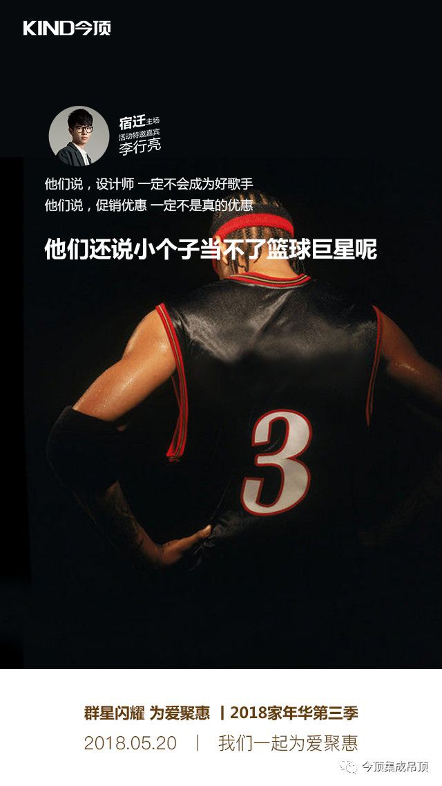 5月20日,今頂又將開(kāi)啟2018家年華第三季“群星閃耀,為愛(ài)聚惠”全國(guó)大促活動(dòng),此次活動(dòng)將推出預(yù)交定金享免費(fèi)3D設(shè)計(jì)、群星爆款產(chǎn)品優(yōu)惠套餐、訂單滿(mǎn)送活動(dòng)、砸金蛋抽獎(jiǎng)、送花服務(wù)等眾多優(yōu)惠活動(dòng)(具體活動(dòng)內(nèi)容以當(dāng)?shù)亻T(mén)店政策為準(zhǔn)),每一項(xiàng)都是實(shí)實(shí)在在的優(yōu)惠!與此同時(shí),李行亮也將作為四大嘉賓之一,助陣江蘇宿遷,和今頂一起“撕掉標(biāo)簽,活出真我”!