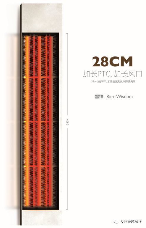智臻擁有2860W的超大功率和加長PTC,動力強勁,能在極短的時間內就將浴室升溫到你想要的溫度,不用等待,也不受空間限制。