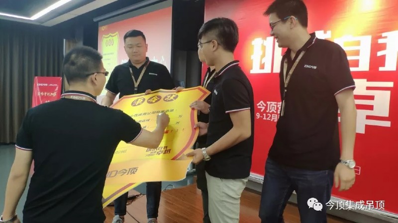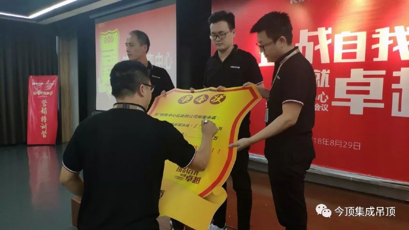 8月29日,浙江今頂集成吊頂有限公司隆重召開了“挑戰(zhàn)自我?成就卓越”今頂營銷中心9-12月巔峰沖刺誓師大會(huì)。今頂全國營銷中心全體精英齊聚一堂,在浙江今頂集成吊頂有限公司總經(jīng)理錢宏亮先生的帶領(lǐng)下,有序部署了2018年最后四個(gè)月的沖刺戰(zhàn)略。