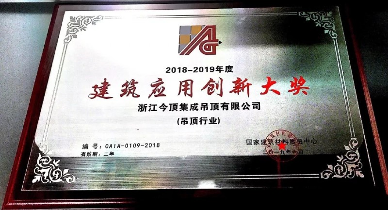 今頂榮獲2018年度集成吊頂行業(yè)領(lǐng)軍品牌